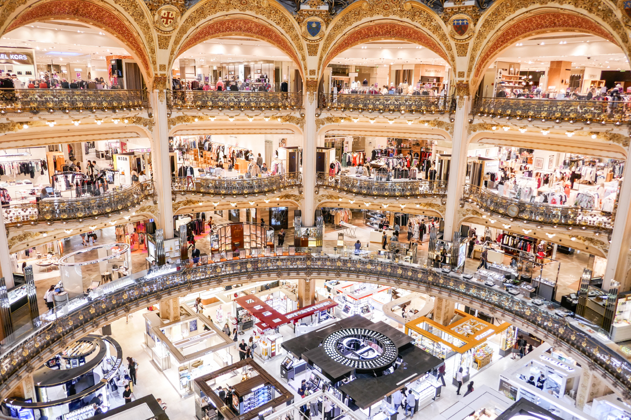 Si te gusta el shopping, no puedes dejar de visitar las Galerías Lafayette, los grandes almacenes más famosos de París. Su cúpula de cristal y su terraza con vistas panorámicas convierten la experiencia en algo más que ir de compras. Incluso si no compras nada, el lugar merece la pena por su arquitectura.